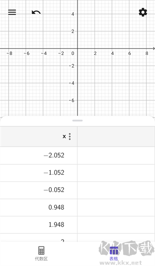 使用表格區(qū)按鈕打開表格區(qū),如果你激活了函數(shù)的數(shù)值表,則可以在這里(表格區(qū))找到指定范圍內(nèi)的數(shù)值表。