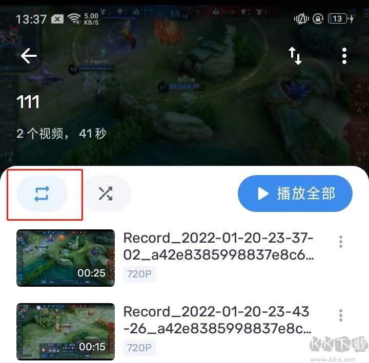 3、點(diǎn)開這個(gè)文件夾,然后點(diǎn)擊下圖這個(gè)按鈕,列表中的視頻就會(huì)循環(huán)播放。