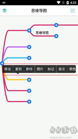 點(diǎn)擊分支文字開始編輯,長按即可彈出功能選項(xiàng),點(diǎn)擊+號按鈕添加子分支。