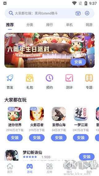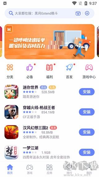 2、之后就是首頁,這里是一些熱門的游戲或應(yīng)用;