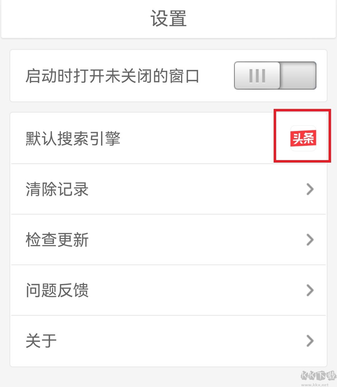 2、可以看到默認(rèn)的搜索引擎為頭條搜索。