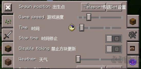 4、設(shè)置欄里面提供了各種功能性的修改,比如修改游戲模式,還能直接傳送到下界。