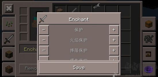 2、進入物品界面,我們能看到背包里的各種物品,還能通過附魔按鈕直接附魔物品,可以為各種物品附魔,不光是武器和工具,草方塊也能附魔。