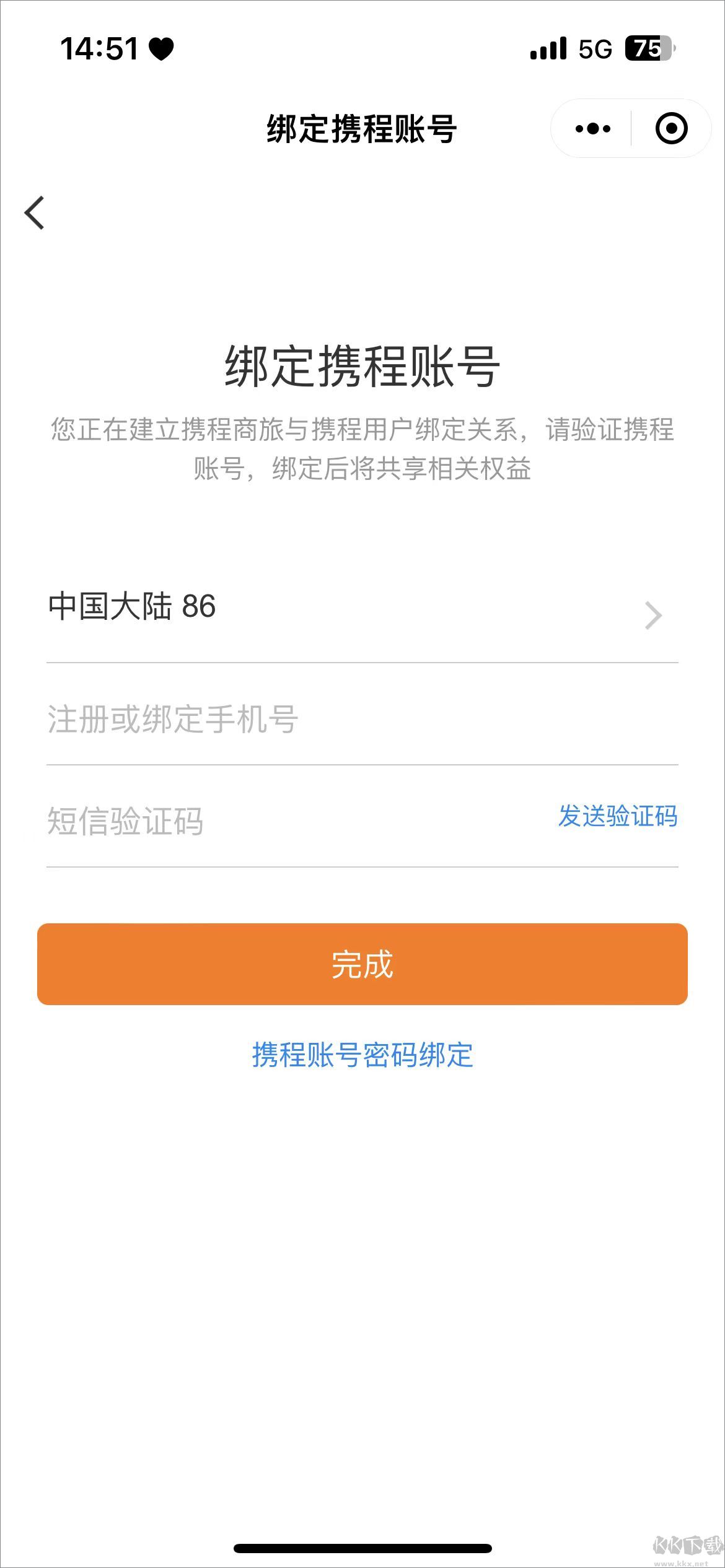 2、在“我的攜程”頁面中,找到并點擊頭像旁的“綁定攜程賬號”按鈕。