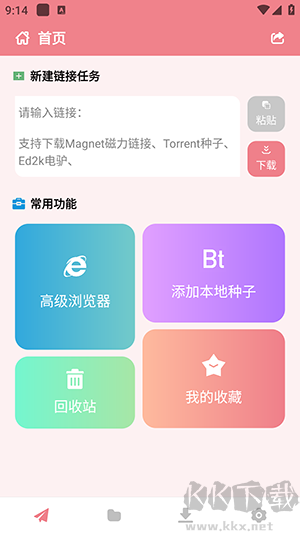 1、沒有廣告,不用注冊,即開即用,支持magnet、ftp鏈接、ed2k鏈接等的下載。