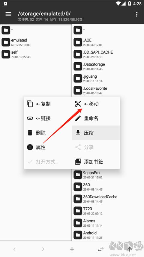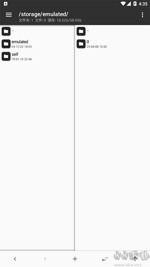 打開 MT 管理器后第一眼看到的就是它的左右兩個(gè)操作窗口,該設(shè)計(jì)已經(jīng)是 MT 的標(biāo)志之一,與之對(duì)應(yīng)的是雙窗口操作模式。如果你是第一次使用,開始會(huì)不太適應(yīng),但相信我,等你花點(diǎn)時(shí)間來熟悉它后,你的操作效率會(huì)大大高于使用其它文件管理器。