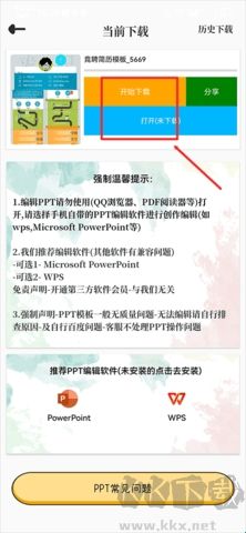 4、最后點(diǎn)擊開(kāi)始下載,下載完成后再點(diǎn)擊打開(kāi)按鍵即可使用ppt。