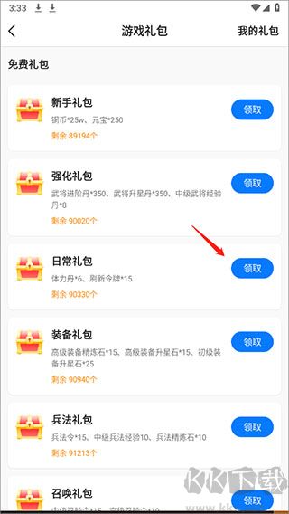 3、選擇一個(gè)禮包,點(diǎn)擊領(lǐng)取便可。