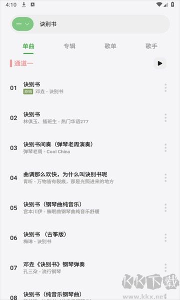 岸聽音樂安卓版是一款高質(zhì)量的音樂播放器軟件,這款軟件內(nèi)為用戶提供了海量的音樂資源,用戶能夠在這款軟件中輕松的搜索到可各種你想聽的歌曲,并且還能支持用戶一鍵將喜歡的音樂加入到歌單中,方便用戶可以在后續(xù)繼續(xù)聽歌,感興趣或者有需要的小伙伴就快來kk網(wǎng)站下載體驗一下吧。