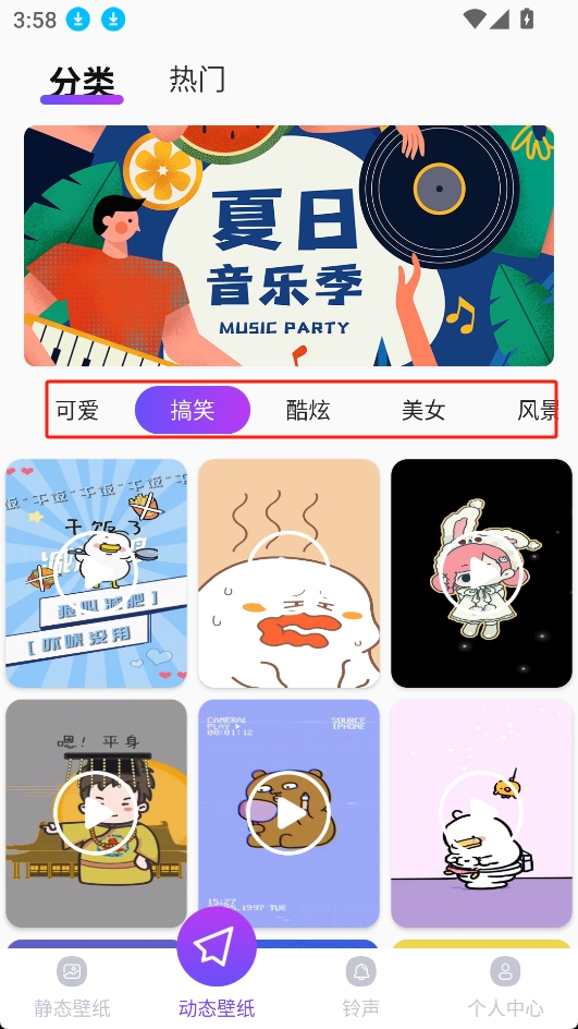 1.打開軟件,點擊“動態(tài)壁紙”,如圖所示: