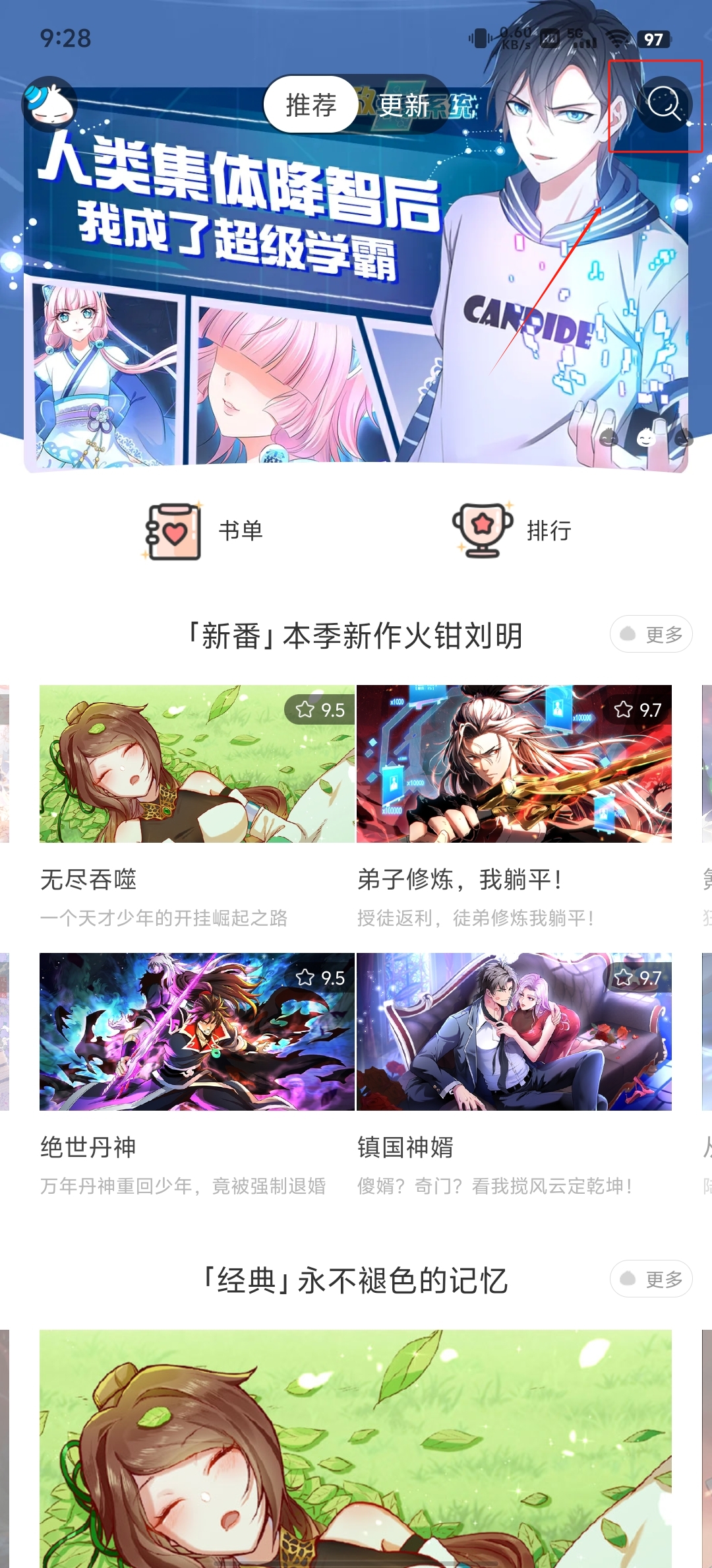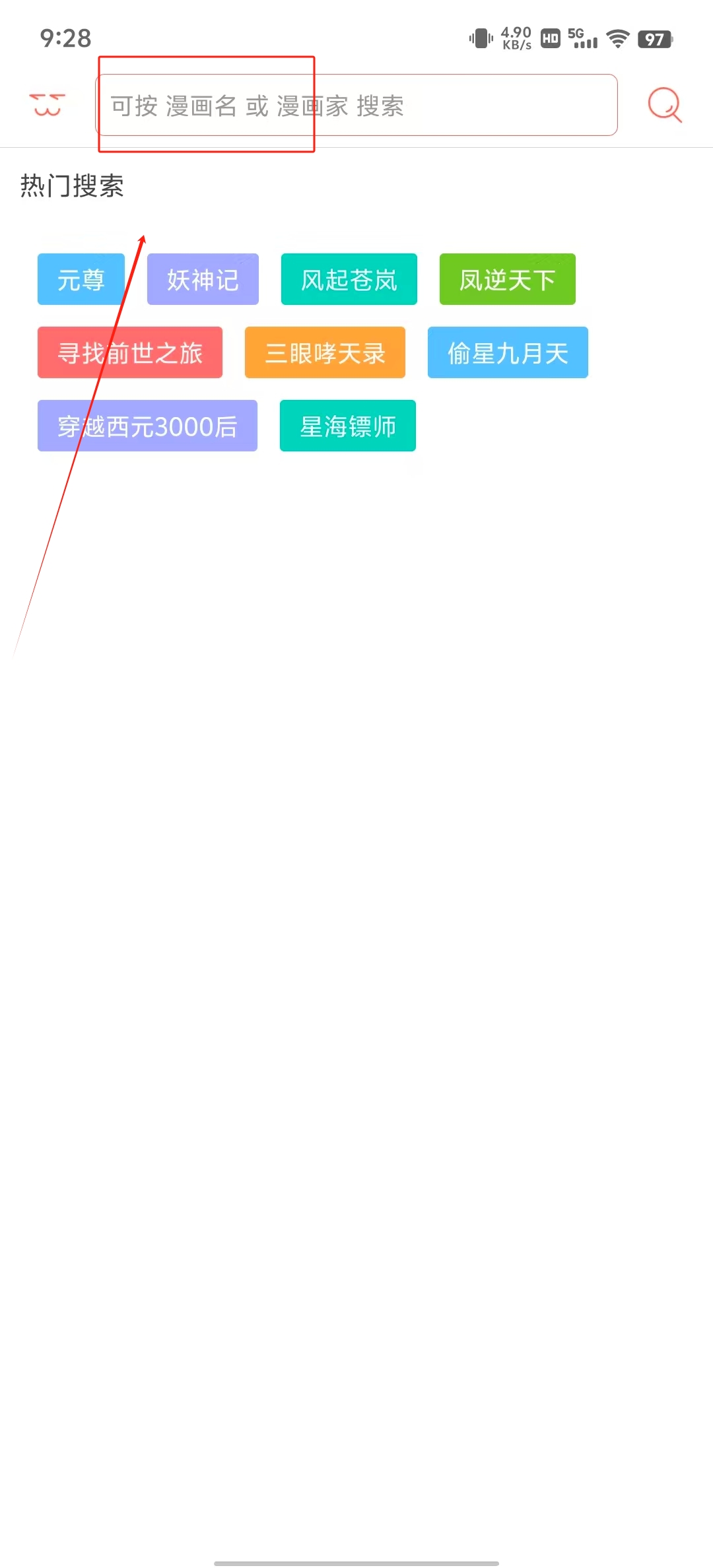 2.在搜索框輸入想要看的漫畫,開始搜索;