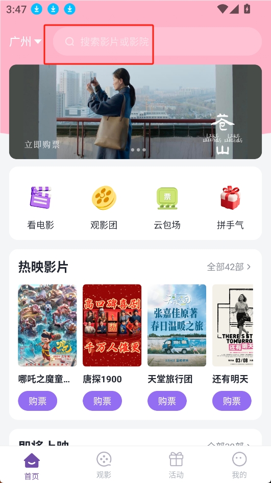 2.熱門影片開放預(yù)售,可提前預(yù)定影院最佳觀影位置,快人一步;