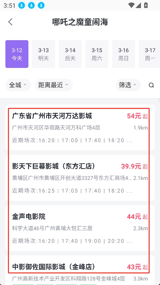 5.實(shí)時(shí)更新各地影院排期,平臺(tái)還有交通路線指引,輔助用戶做形成規(guī)劃;