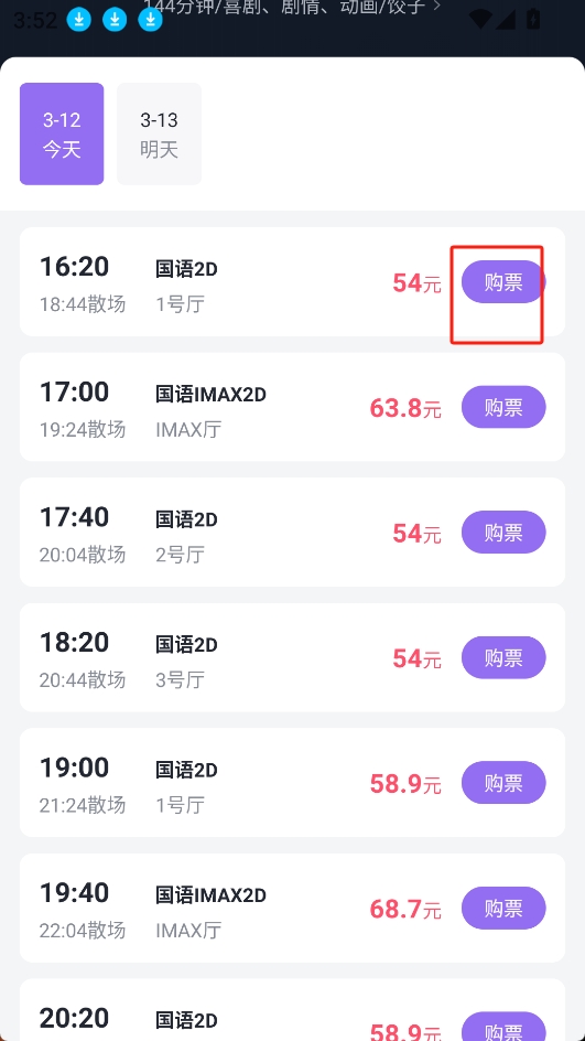 5.選中你想觀看的場(chǎng)次,點(diǎn)擊購(gòu)票即可。