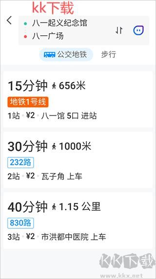 6、您可在主界面底部選取公交、地鐵、步行這兩種方式以規(guī)劃路線。請輸入您的起點位置與終點位置(默認起點為您的當前位置),進而搜索您所需的路線。例如,此為搜索公交路線。