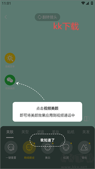 3、當個人確認調節(jié)完畢后,即可點擊視頻美顏功能,將美顏效果應用于視頻通話之中。