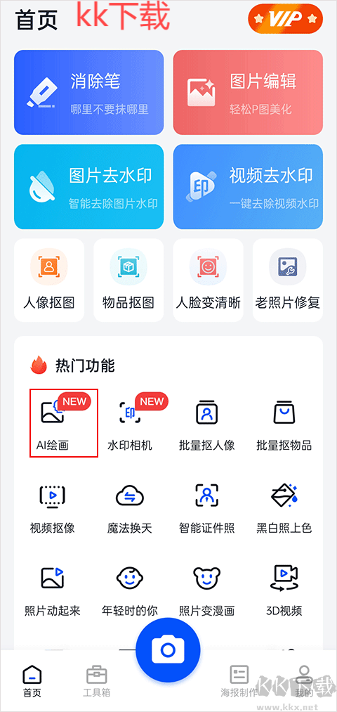1、在開啟無痕消除筆軟件之后,點(diǎn)擊 AI 繪畫功能;