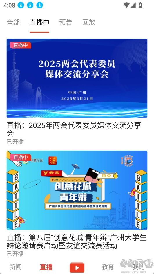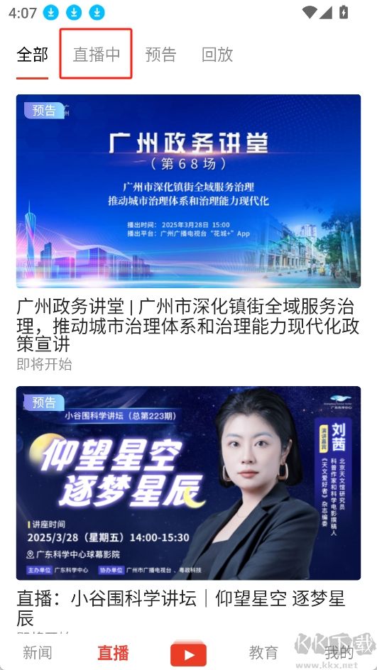 2.選擇直播中,點(diǎn)擊等待頁面跳轉(zhuǎn);