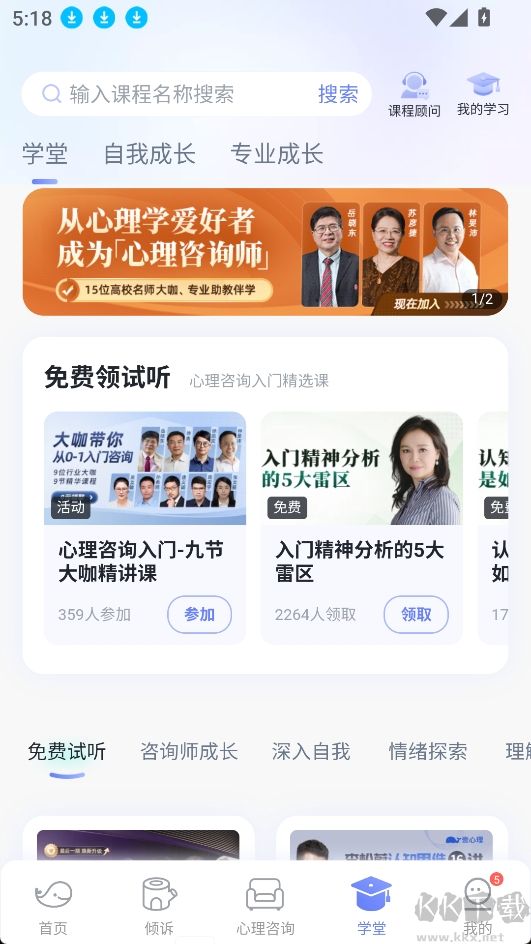 4.免費(fèi)和付費(fèi)兩種心理課程,幫助疏導(dǎo)心理、情緒管理、壓力應(yīng)對(duì)等實(shí)用技能;