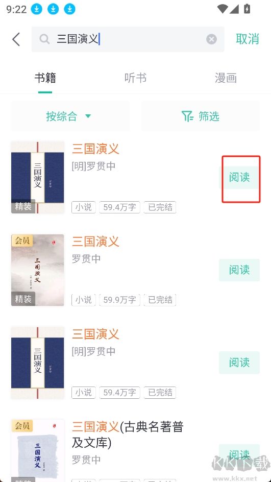 3.根據(jù)需求在搜索結(jié)果中選擇想要的書,點(diǎn)擊右邊的閱讀;