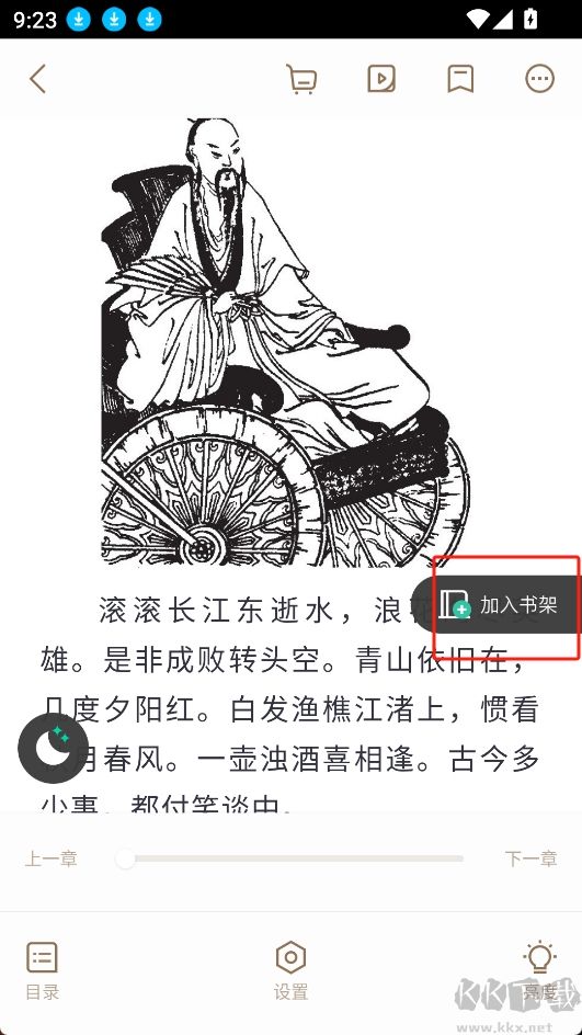 4.點(diǎn)擊任意位置呼出窗口,然后點(diǎn)擊右邊的加入書架即可。