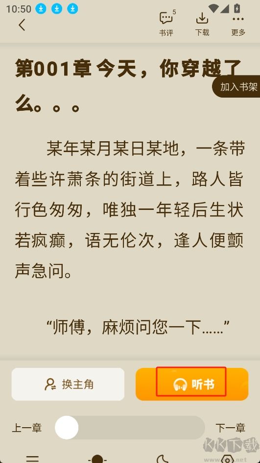 4.點擊屏幕任意位置呼出窗口,點擊聽書按鈕;