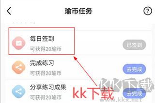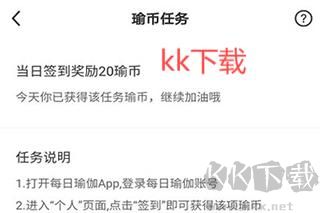 3、依據(jù)官方介紹可知,簽到任務(wù)每日可助力獲取 20 瑜幣,且僅能完成一次,此舉頗具誠(chéng)意。