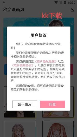 1、請(qǐng)下載由本站所提供的照片漫畫化應(yīng)用程序。在首次使用該應(yīng)用程序時(shí),需仔細(xì)閱讀用戶協(xié)議并予以同意;