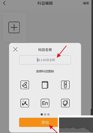 5、彈出選項(xiàng),輸入相關(guān)科目名稱(chēng),點(diǎn)擊下方的 “添加” 按鈕 。