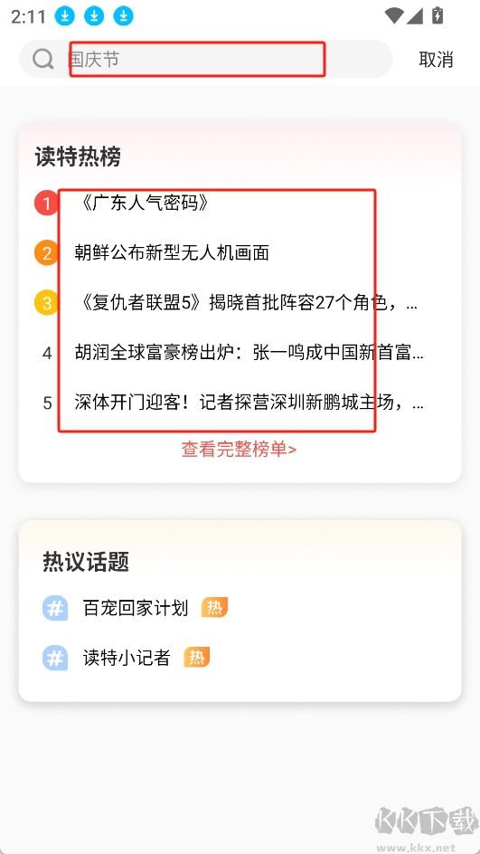 2.進(jìn)入搜索界面,輸入你想搜索的新聞或者在熱搜榜尋找;
