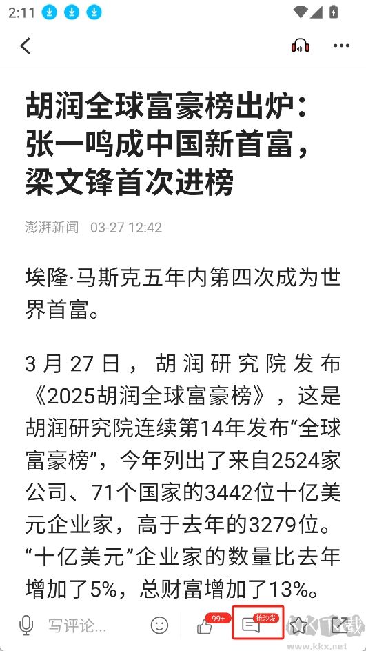 3.選擇你想要評論的新聞,點(diǎn)擊進(jìn)入,然后點(diǎn)擊下面的評論,編寫評論后發(fā)表即可。