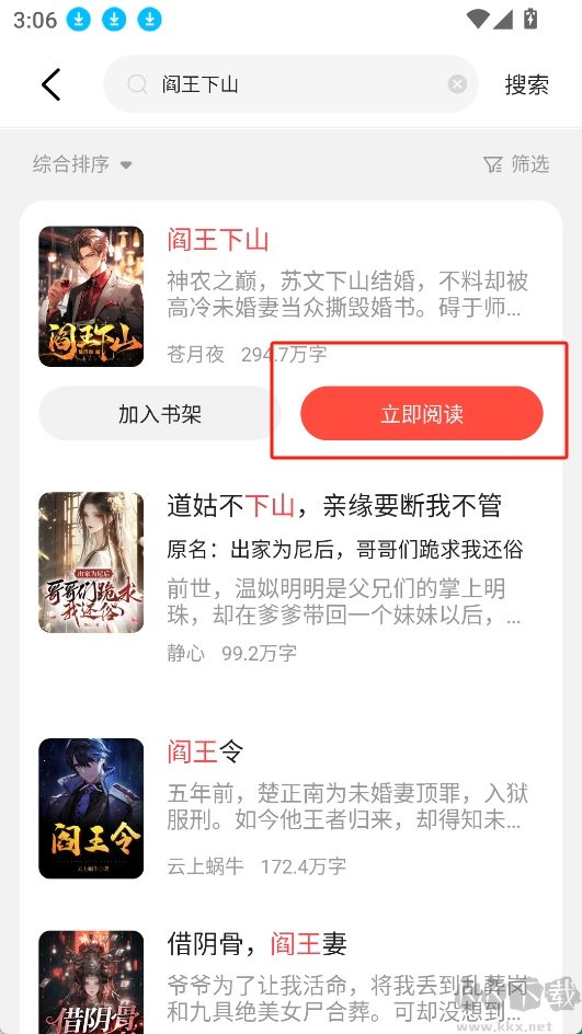 2.根據(jù)個(gè)人需求在搜索結(jié)果里面選擇想要閱讀的書籍,點(diǎn)擊立即閱讀;