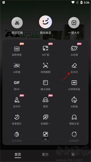 1、在首頁(yè)中找到并點(diǎn)擊去水印功能