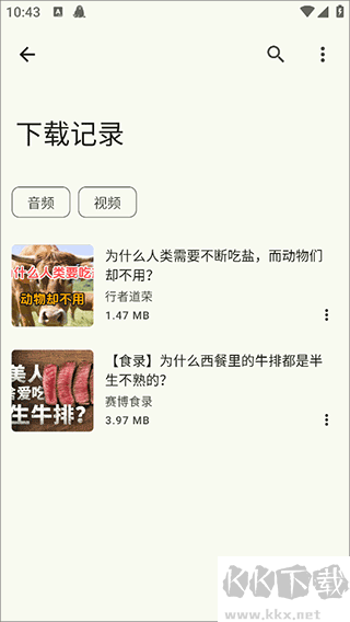 6、切換至下載記錄頁(yè)面,對(duì)應(yīng)用內(nèi)已下載和正在下載的視頻、音頻等文件進(jìn)行查看與管理。