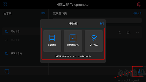 6、返回主頁后,點擊右邊最下方的按鈕,可新建并導入臺本 。