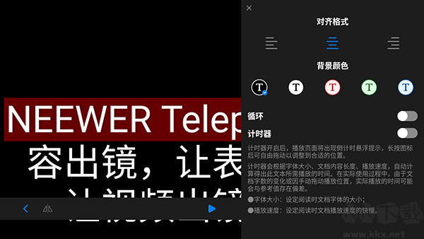 2、提詞設置:能對背景透明度、字體、播放速度、顏色等多方面進行自定義設置,契合各類場景的顯示需求 。