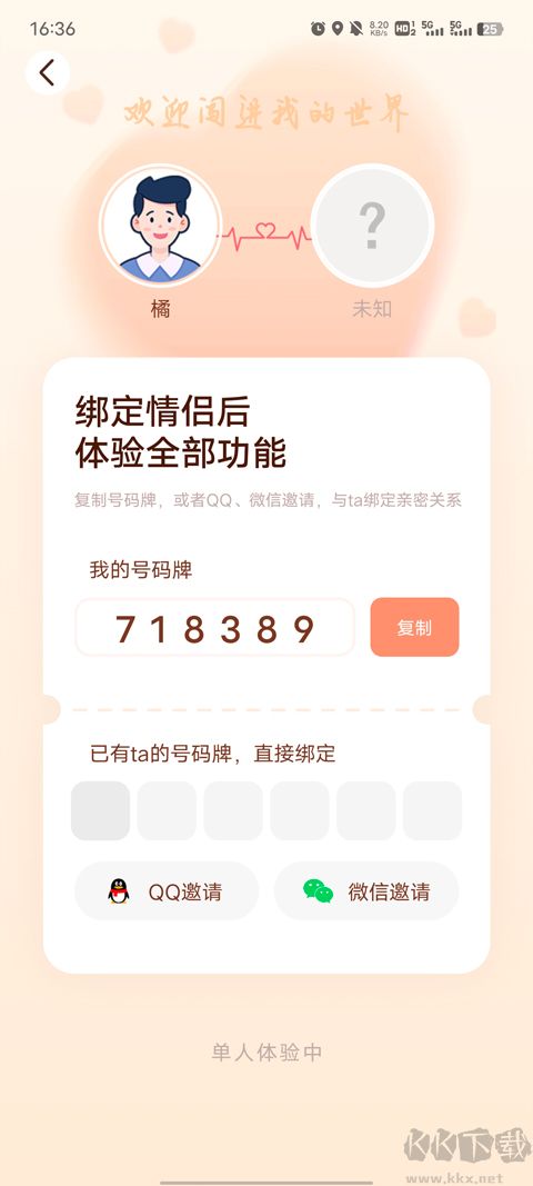 5、可復(fù)制自己的號碼牌QQ、微信邀請、或者直接填寫情侶的號碼牌;