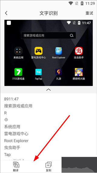5、點擊識別按鈕,即可對圖片中的文字進行識別。下方工具欄支持對識別出的文字進行復制、翻譯操作,也可將其分享給合作伙伴 。