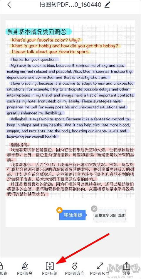 5、照片完成識別后,系統支持添加水印、PDF 加密、PDF 簽名等操作,點擊 “PDF 壓縮” 選項,選擇合適的壓縮大小,隨后即可在文檔頁面查看到已成功轉換的 PDF 文件。