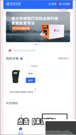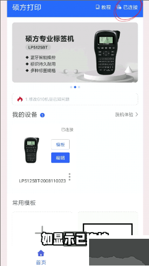 5、返回碩方打印應(yīng)用程序(app)的主界面,即可確認(rèn)已成功完成連接。