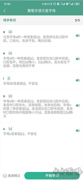 4、開啟學(xué)習(xí)進(jìn)程:點(diǎn)擊 “開始學(xué)習(xí)”,進(jìn)入對(duì)應(yīng)葡萄牙語(yǔ)學(xué)習(xí)環(huán)節(jié) 。