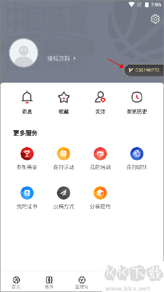 1、進入會員入口:打開軟件登錄后,切換到 “我的” 模塊,點擊加入中國籃協(xié)會員選項。