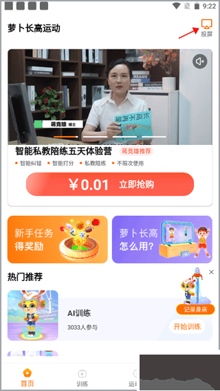 5、投屏成功后,在安卓設備打開【蘿卜長高運動】,即可在電視端同步進行運動。