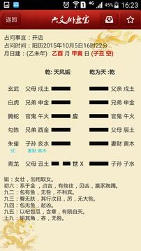 《六爻排盤寶》是一款內置中國古典文化六爻八卦文化的起卦算卦軟件,用戶使用六爻排盤寶APP可以計算自己今天的運勢,以及各類情況。并配有多種起卦方式,包括時間起卦、銅錢搖卦、兩數(shù)起卦等等。每次起卦算卦,用戶可以自定義算什么,軟件會通過卦象自動分享事件,并出具卦象分析。用戶可以保存卦象分析查閱,并分享交流等等!感興趣的朋友們可以下載體驗一下!