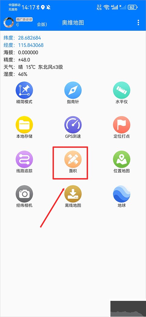 1、打開應(yīng)用,點擊 “面積” 按鈕進入測量操作界面。