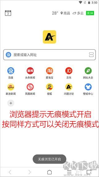 3、確認開啟狀態(tài):點擊后瀏覽器提示無痕模式已開啟,此后瀏覽網(wǎng)頁不會留下歷史記錄。