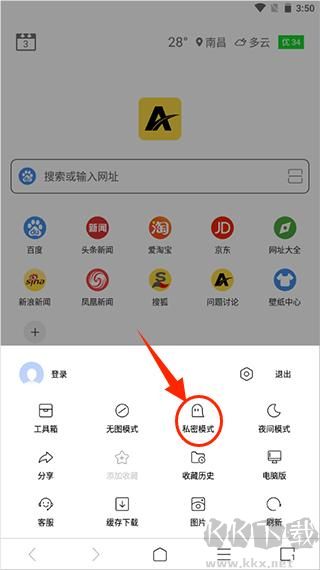 2、尋找私密模式:點擊下方功能選項,在眾多選項中找到 “私密模式” 并點擊。