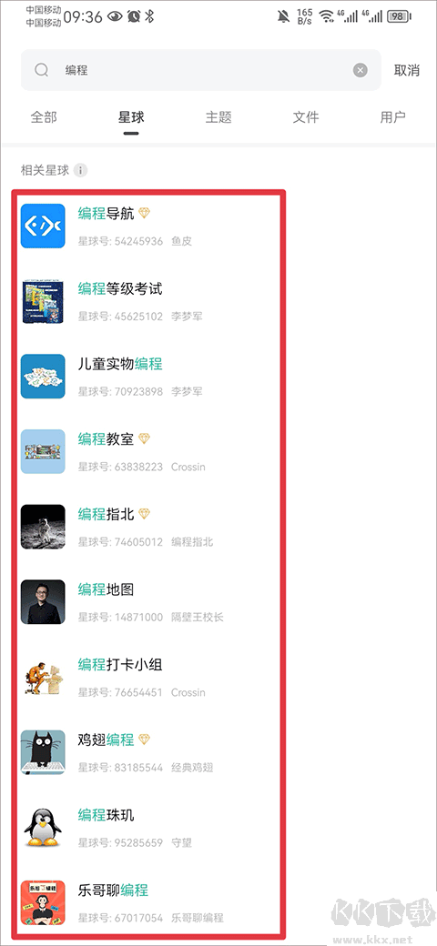 2、搜索出來后,選擇并點(diǎn)擊你要加入的星球