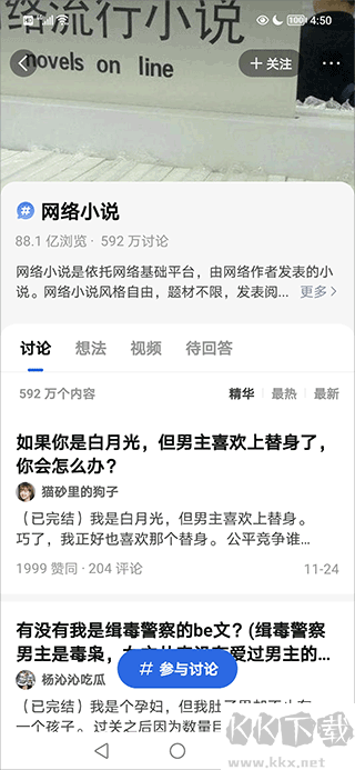 1、首先,打開知乎去廣告版軟件,在頂部綠色方框內(nèi)輸入 “小說(shuō)”;若有目標(biāo)小說(shuō),也可輸入具體名字或作者名。