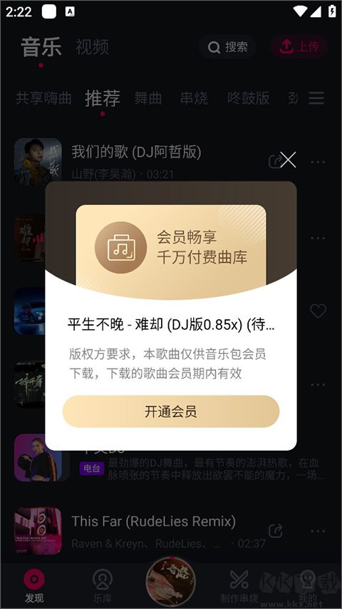3、下載付費(fèi)歌曲需開通 DJ 音樂會(huì)員,開通后可免費(fèi)下載全場歌曲,享受無限制暢聽權(quán)益。